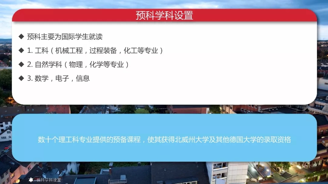 1.德国帕德博恩大学:受德国教育及文化部(KMK)和德国校高校长联合会议(HRK)授权成为北威州唯一一所可以招收中国高中毕业生直接进入预科学习的综合性大学。预科成绩全德认可,申请德国名校无障碍。